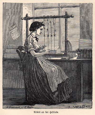 zu- sammenpfuschen. Genug Mühe kostet es allemal. Ein paar Stunden ist man schon beschäftigt. Beim maschinellen Druck macht die große Zahl das Einzelstück erschwinglich. Wir aller- dings vervielfältigen nichts. Bei uns ist alles Handarbeit. Unvorstellbar? Unbezahlbar? Ein zum Scheitern verurteilter Plan? ![]() |